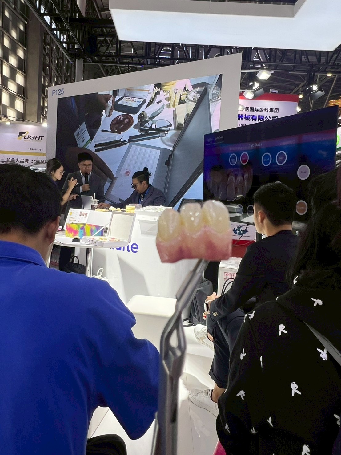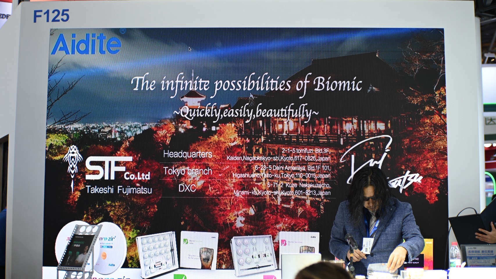 At the Aidite booth during DenTech China 2025 held in Shanghai, our representative Mr. Fujimatsu delivered a lecture and live demonstration (two sessions, 90 minutes each).