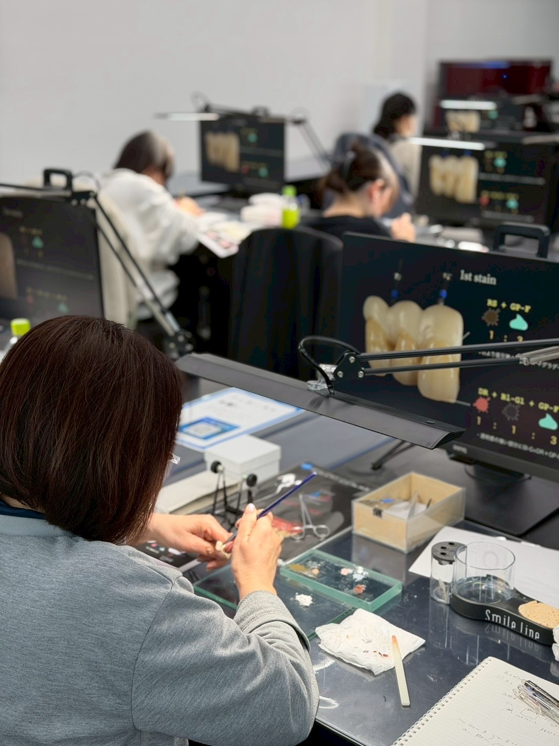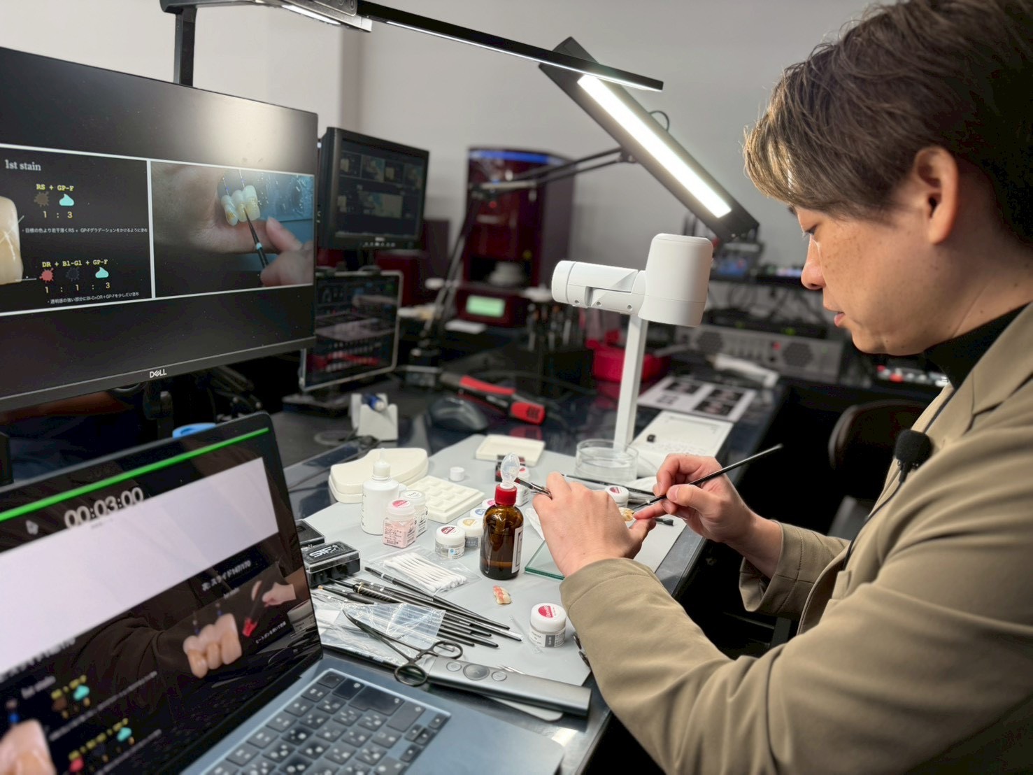 For this course, we invited Dt. Keita Fujisaki of Charm Dental Design as our instructor, and he provided guidance on the following topics using Vintage Art Universal for a stain hands-on training session.